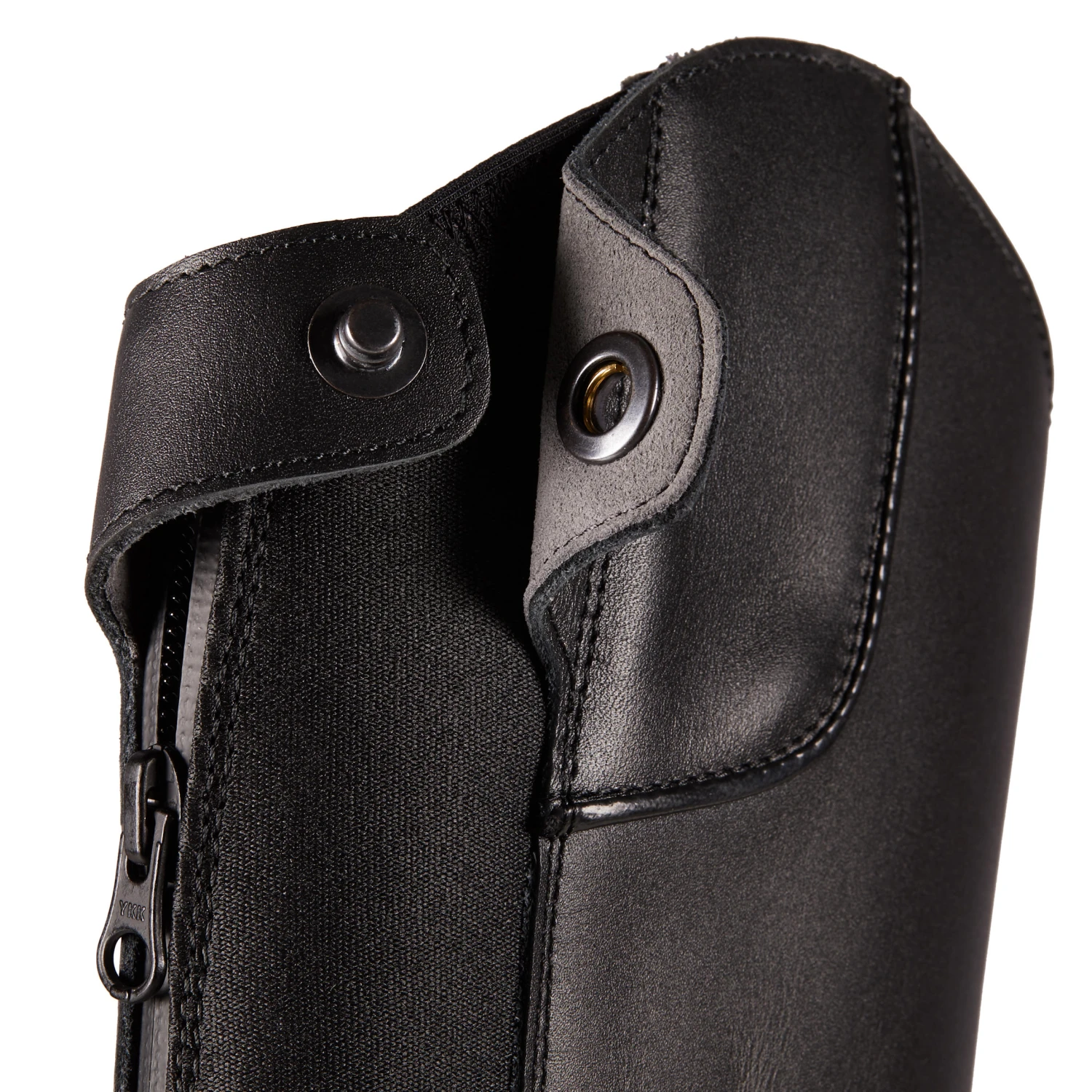 The zip at the back (protected by a flap), makes these boots easy to put on. The non-slip sole prevents your foot from slipping on the stirrup iron, while the spur cover under the ankle keeps everything under control. The insole makes these boots very comfortable. These boots feel like a second skin, without creating any discomfort.