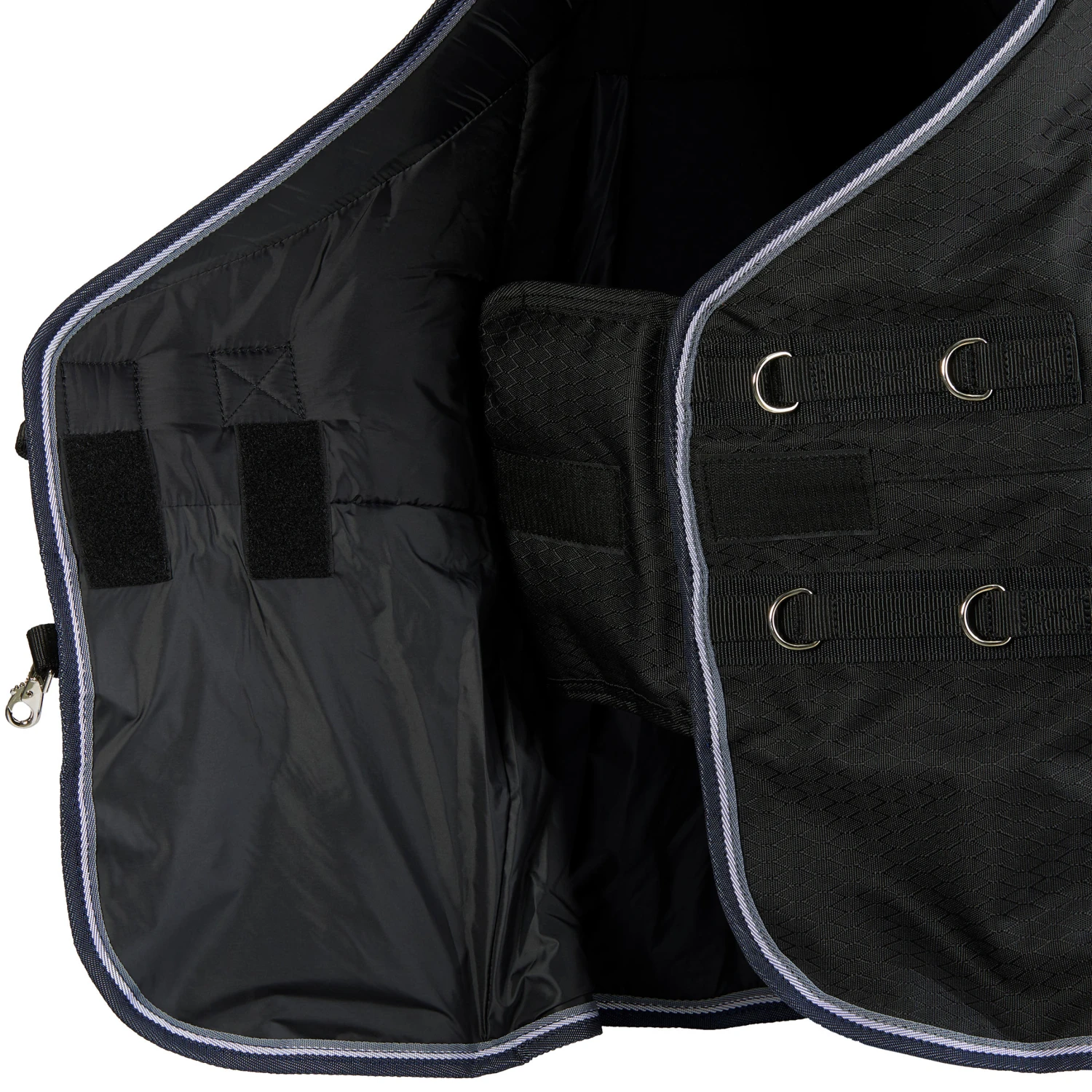The rug’s padding was designed based on the horse’s thermal protection areas. It is warmest on the horse’s back and coolest at the bottom of the rug.