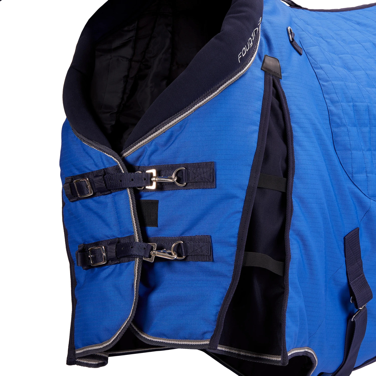 Rugs should be regularly cleaned. When left for long periods of time, dried urine and manure can damage the rug. A dirty rug can cause skin irritation. Before removing the rug, remove any dust using a brush. All Fouganza rugs are machine washable at 30°C.
