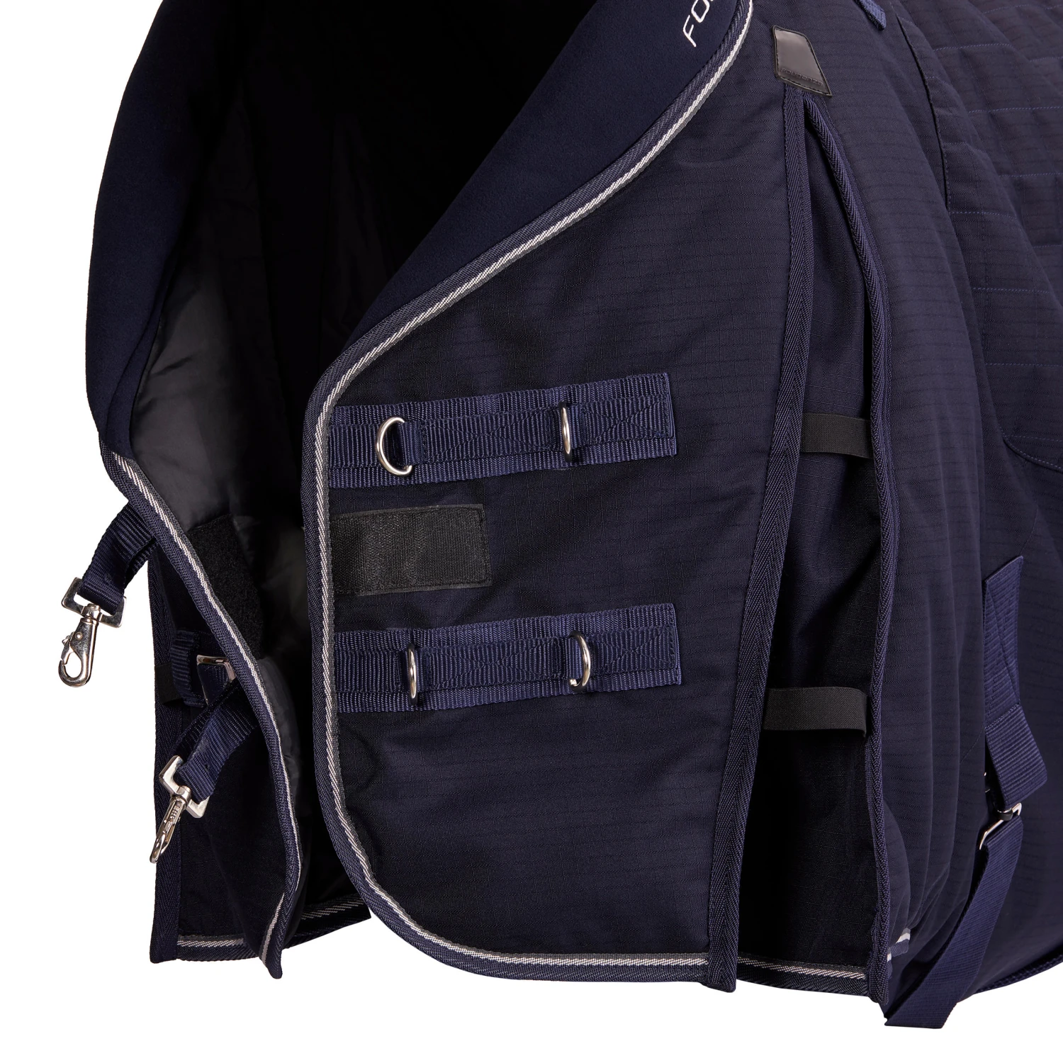 Rug equipped with a symmetrical belly flap. This keeps the horse’s stomach warm and prevents heat loss.