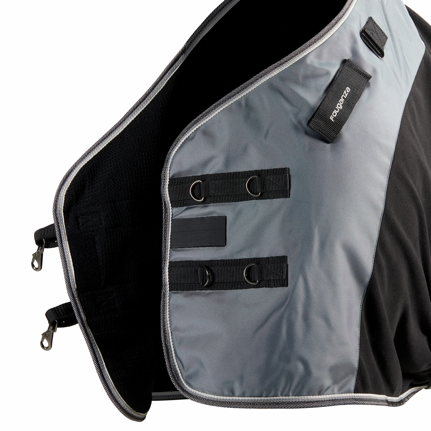 Our equestrian designers have developed this fleece rug to protect your horse’s back from the cold after work and shelter your horse from drafts as it dries.The honeycomb lining provides excellent comfort. What’s more, it has an adjustment system to adapt to different body shapes, including different shoulder widths.
